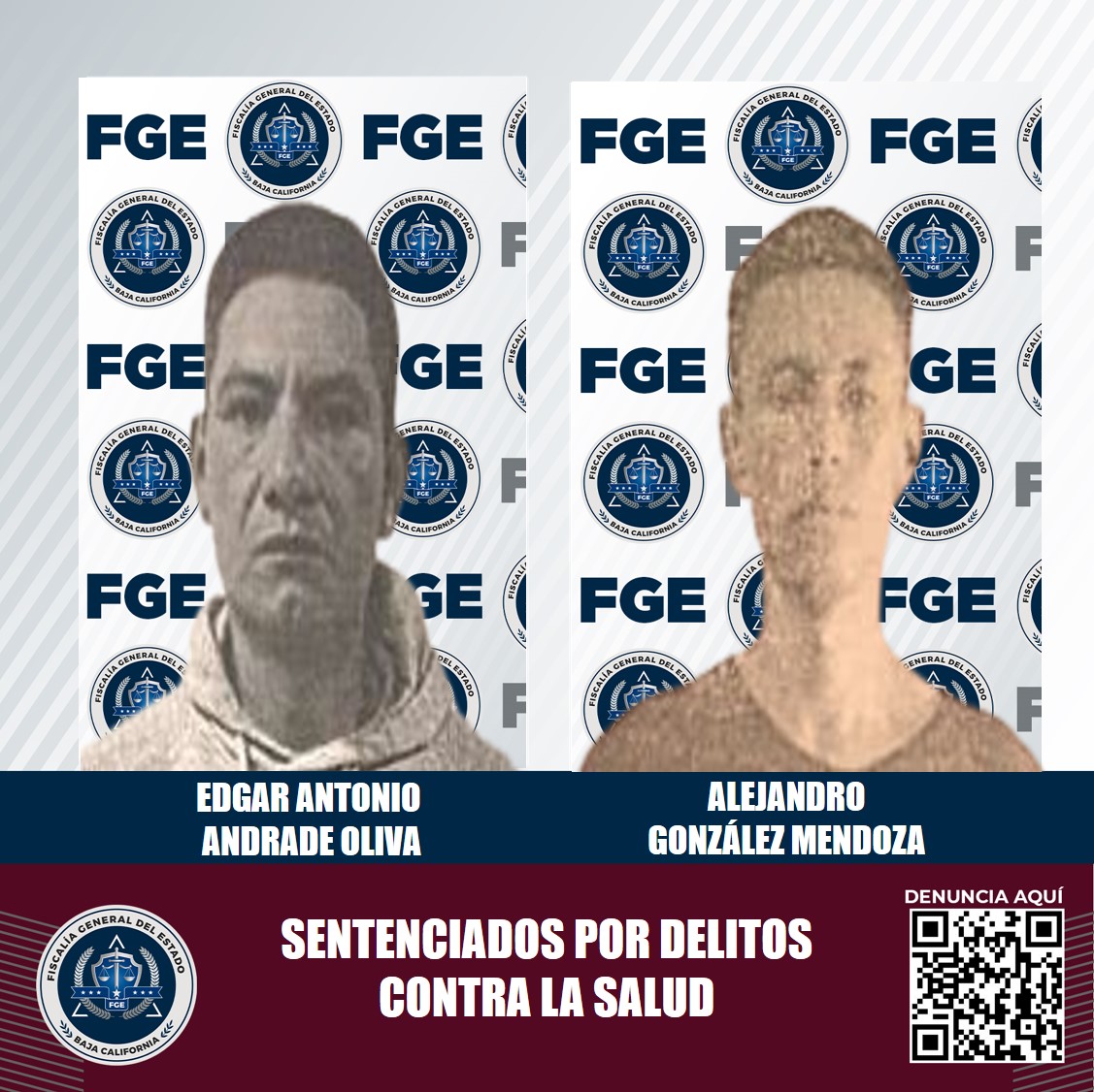 TIJUANA, B.C. Labor de investigación efectuada por la Fiscalía General del Estado, a través de la Fiscalía Especializada en Narcomenudeo, resultó en la obtención de sentencias condenatorias para dos hombres, penalmente responsables de delitos contra la salud.