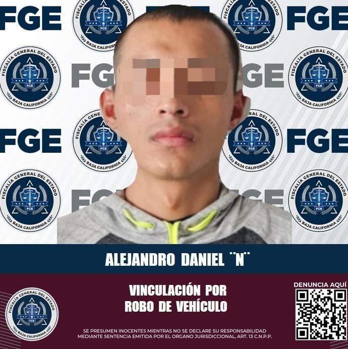 ENSENADA, B.C. La Fiscalía Regional de Ensenada logró la vinculación a proceso de Alejandro Daniel “N” quien, el tres de noviembre de 2023, dispuso sin consentimiento del propietario, de un vehículo marca Honda.