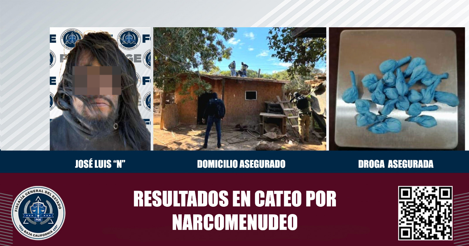 SAN QUINTÍN, B.C. El arresto de un hombre, así como el aseguramiento de envoltorios con metanfetamina, es el resultado del cateo realizado por la Fiscalía General del Estado (FGE) en San Quintín.