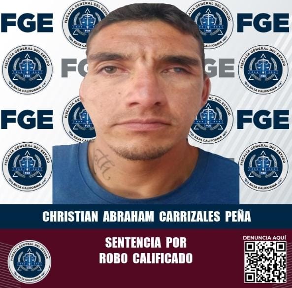 ENSENADA, B.C. Tras demostrar la culpabilidad de Christian Abraham Carrizales Peña, en el delito de robo calificado a casa habitación, la Fiscalía General del Estado logró sentencia condenatoria por 5 años con 4 meses y 20 días de multa en su contra.