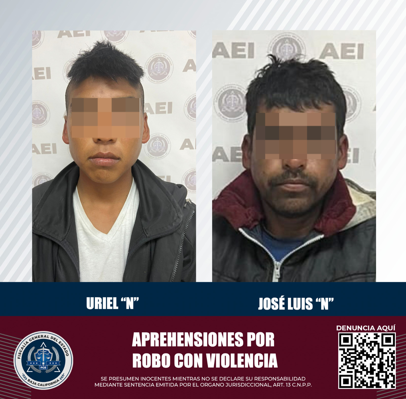 Agentes de la FGEBC capturan a par de sujetos por robo con violencia