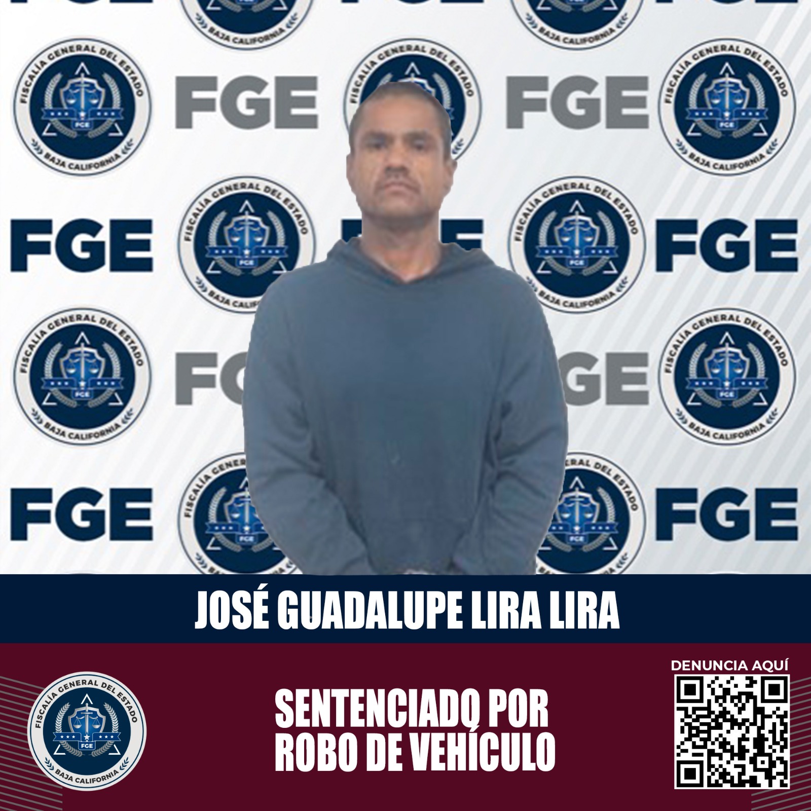 SAN FELIPE, B.C. La Fiscalía General del Estado (FGE), logró, con la presentación de una carpeta de investigación fortalecida, una sentencia condenatoria de dos años de prisión para José Guadalupe Lira Lira, responsable del delito de robo de vehículo equiparado en su modalidad de uso.