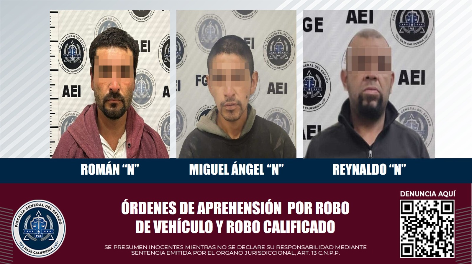 TIJUANA, B.C. Tres sujetos con orden de aprehensión, dos por robo de vehículo y uno por robo calificado, fueron detenidos y puestos a disposición de jueces de control, a fin de que avancen las investigaciones que lleva a cabo la Fiscalía General del Estado, por los delitos que se les acusa.