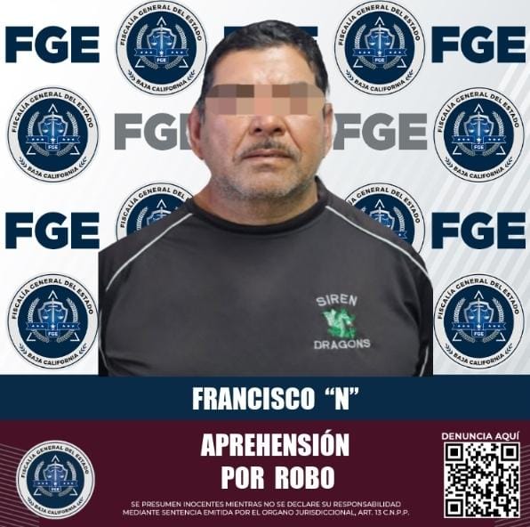 ENSENADA, B.C. Elementos de la Fiscalía General del Estado, adscritos al Grupo Especializado en Aprehensiones, capturaron a Francisco “N”, de 53 años de edad, por el delito de robo cometido en una casa habitación, en septiembre del año pasado.