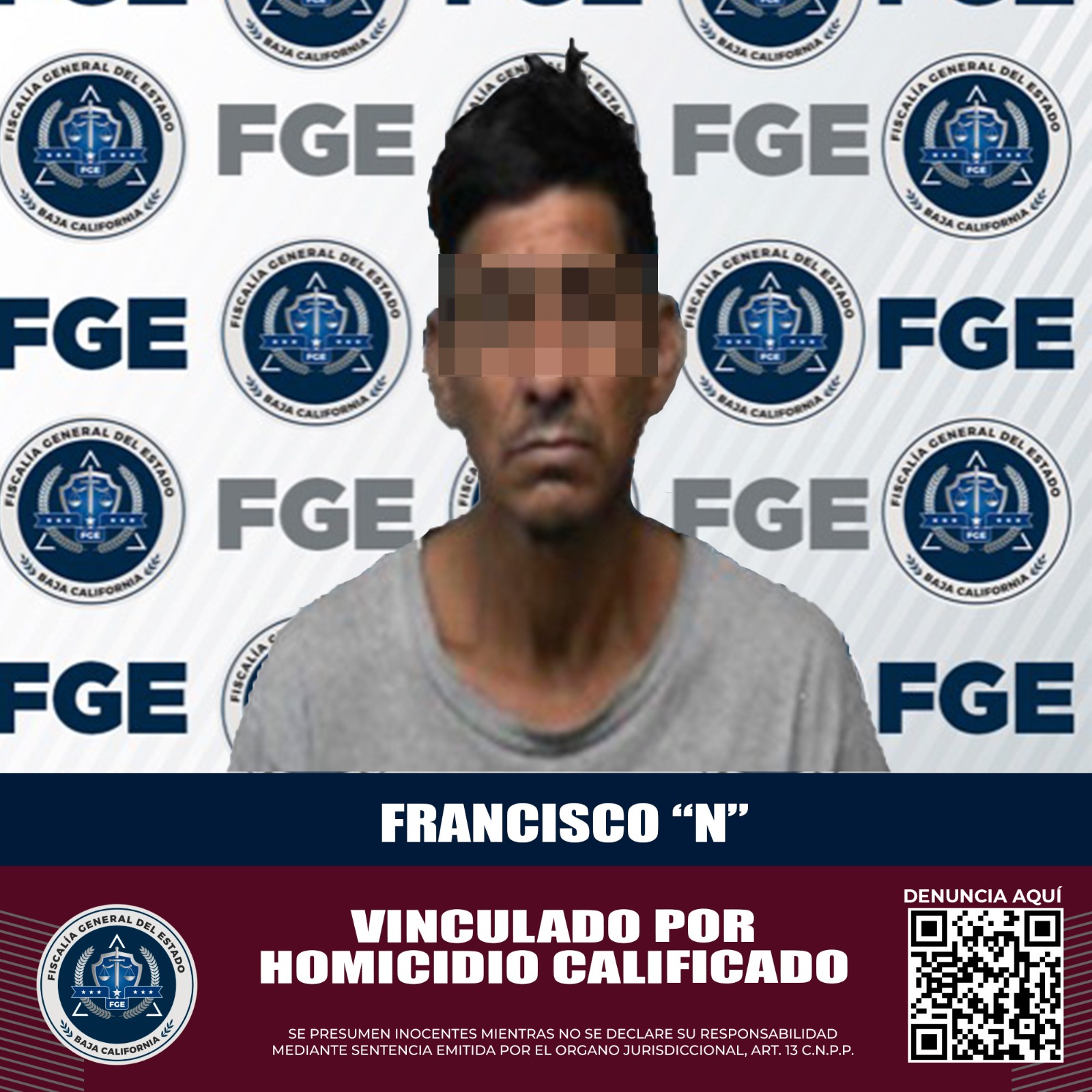 MEXICALI, B.C. La Fiscalía General del Estado, a través de la Fiscalía Especializada en Delitos Contra la Vida, obtuvo con base en las pruebas presentadas, la vinculación a proceso de un hombre acusado de privar de la vida a un residente del fraccionamiento Pórticos del Valle.