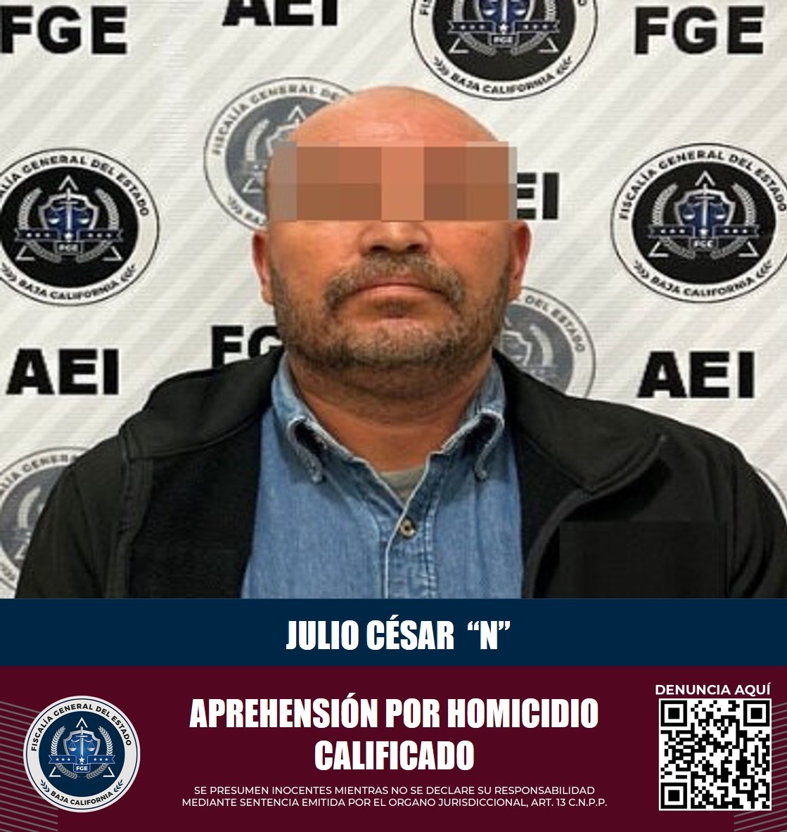 Una vez cumplimentado el mandato judicial, Julio César “N”, fue puesto a disposición del Juez de Control del Poder Judicial del Estado de Baja California, a fin de dar continuidad a la investigación a cargo de la Fiscalía Especializada en Delitos Contra la Vida.