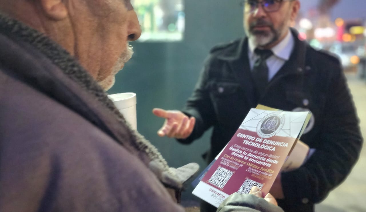 En esta vertiente, para dar mayor difusión a los servicios que ofrece el Centro de Denuncia Tecnológica (CDTEC), de la FGE, a través de la Unidad de Modelo de Atención Ciudadana y Justicia Alternativa Penal, se realizó un volanteo y labor informativa para personas que pudieran encontrarse en situación vulnerable, en este caso, derechohabientes que asisten a consulta, transeúntes, así como a familiares de personas que se encuentran hospitalizadas en el Instituto Mexicano del Seguro Social (IMSS).