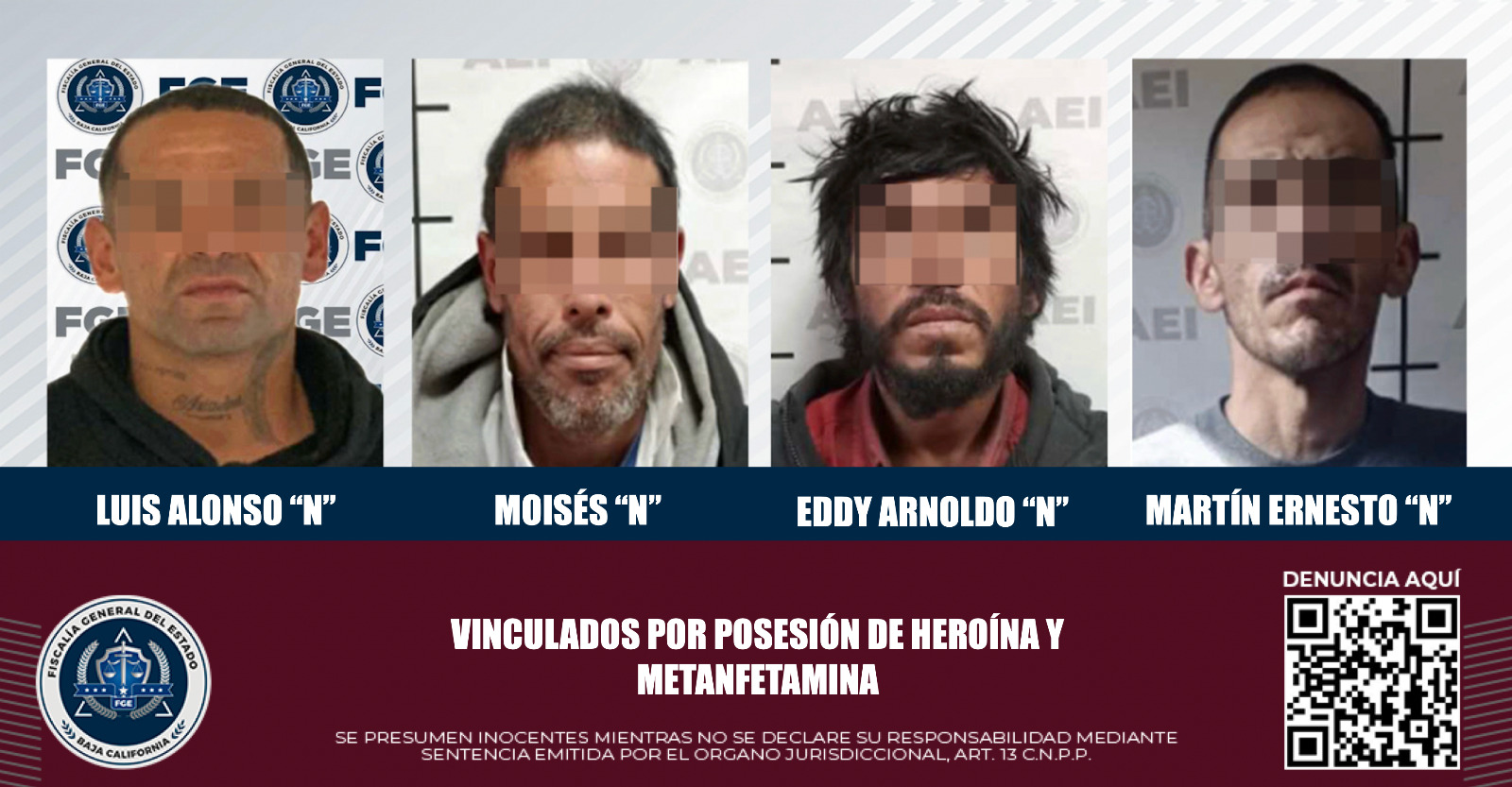 ENSENADA, B.C. En prisión preventiva permanecerán cuatro individuos contra quienes la Fiscalía General del Estado presentó cargos penales por delitos contra la salud en modalidad de posesión de metanfetamina y heroína.