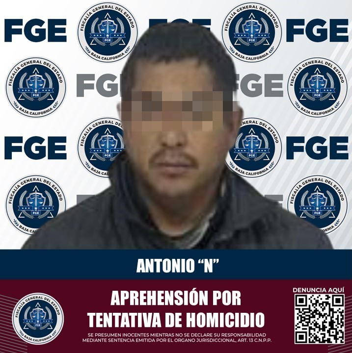 TECATE, B.C. Un sujeto señalado como presunto partícipe en el delito de homicidio calificado en grado de tentativa, fue capturado por elementos de la Agencia Estatal de Investigación en Tecate, por contar con una orden de aprehensión en su contra, se trata de Antonio “N”, alias “El Tocho”.