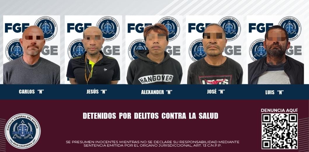 Mientras que los detenidos por delitos contra la salud son: Jesús ¨N¨, de 39 años; Alexander ¨N¨, 19 años; José, 42 años, Luis ¨N¨, de 44 años y Carlos ¨N¨, de 38 años.