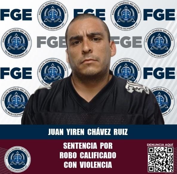 ENSENADA, B.C. La Fiscalía Regional de Ensenada logró una sentencia de 5 años 8 meses de cárcel en contra de Juan Yiren Chávez Ruiz, tras demostrar su culpabilidad en el robo con violencia cometido a un establecimiento Oxxo, en el 2022.