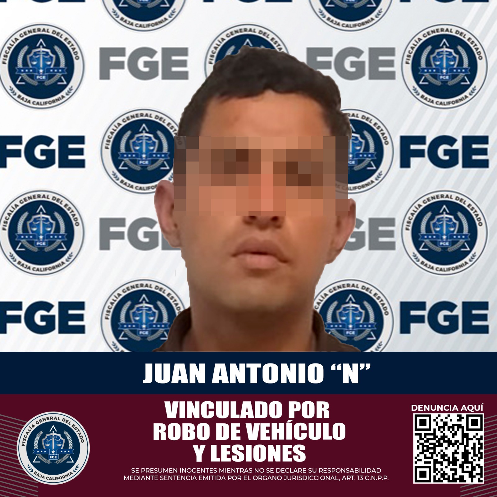 MEXICALI, B.C. La Fiscalía Regional de Mexicali, a través de la Unidad de Investigación de Robo de Vehículos Oriente, logró la vinculación de un hombre, presuntamente relacionado en los delitos de robo de vehículo con violencia y lesiones.