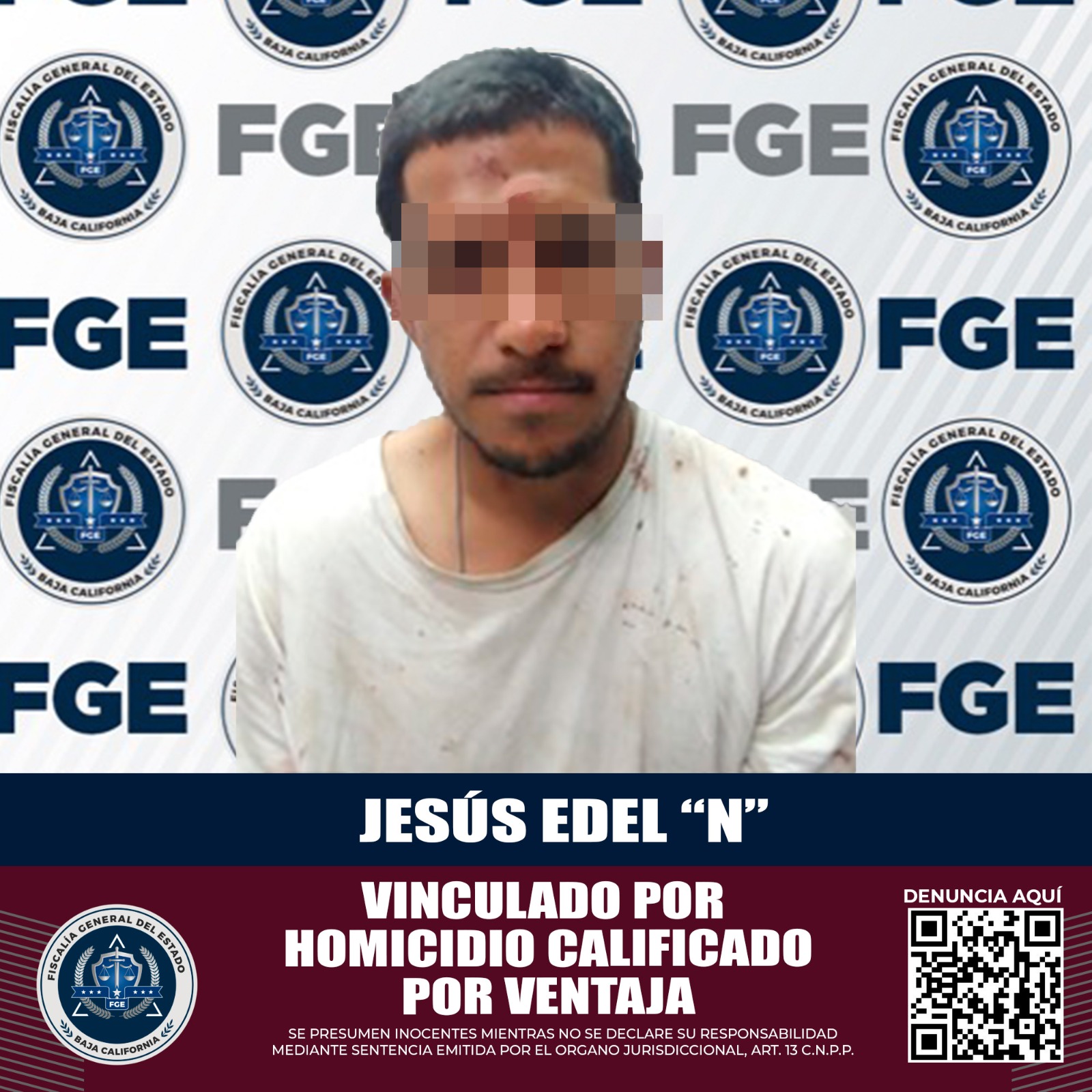 MEXICALI, B.C. La Fiscalía General del Estado (FGE), a través de la Fiscalía Especializada en Delitos Contra la Vida, logró mediante la presentación de pruebas sólidas, la vinculación a proceso de un acusado por el delito de homicidio calificado por ventaja.