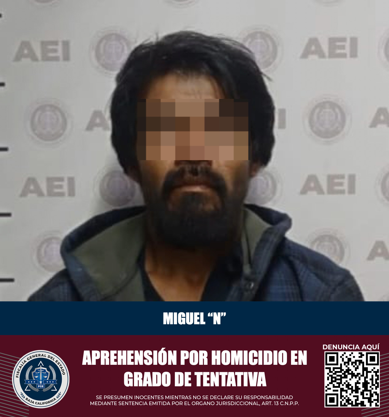 ENSENADA, B.C. Acciones de operatividad e investigación efectuadas por agentes de la Fiscalía General del Estado, permitieron la cumplimentación de una orden de aprehensión contra un sujeto que, el 7 de enero del presente año, presuntamente atentó contra la vida de un hombre.