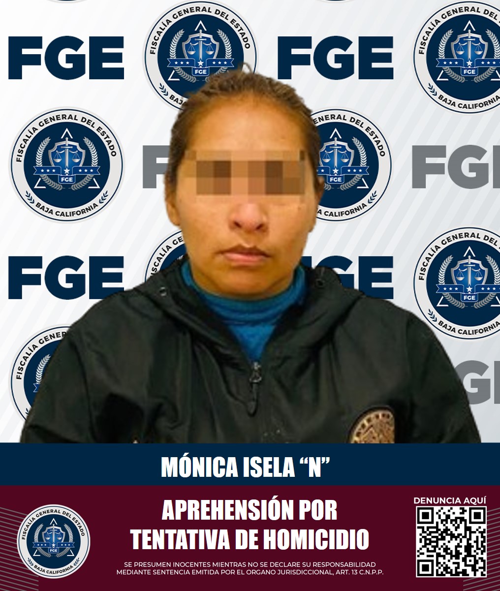TIJUANA, B.C. Elementos de la Agencia Estatal de Investigación (AEI) llevaron a cabo la aprehensión de una mujer de nombre Mónica Isela “N”, quien contaba con un mandato judicial por la probable comisión del delito de homicidio calificado con ventaja en grado de tentativa.