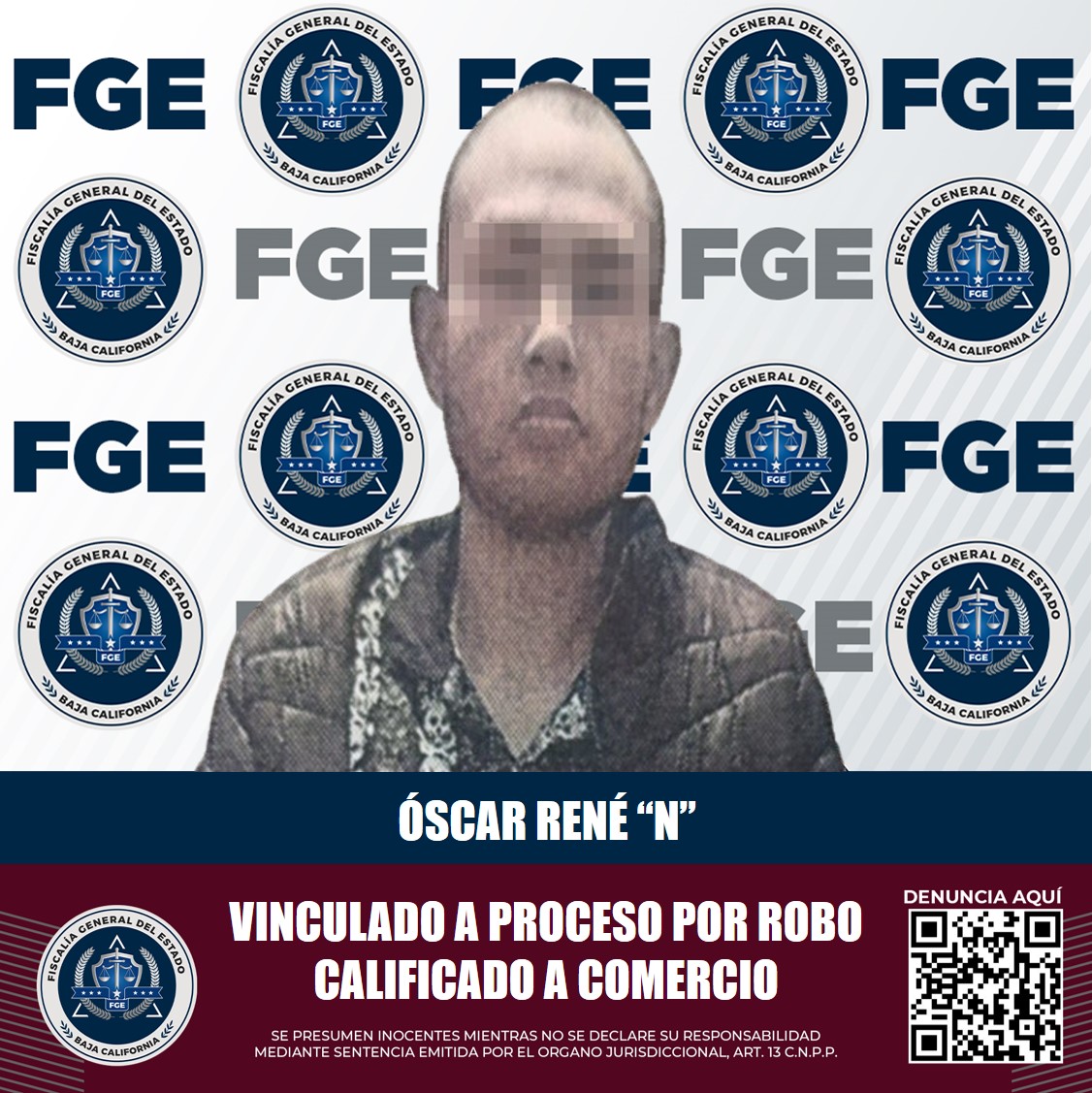 TIJUANA, B.C. Con base en argumentos y datos de prueba, la Fiscalía Regional de Tijuana logró acreditar la presunta responsabilidad de Óscar René “N”, en el delito de robo calificado a comercio abierto al público ejecutado con violencia.