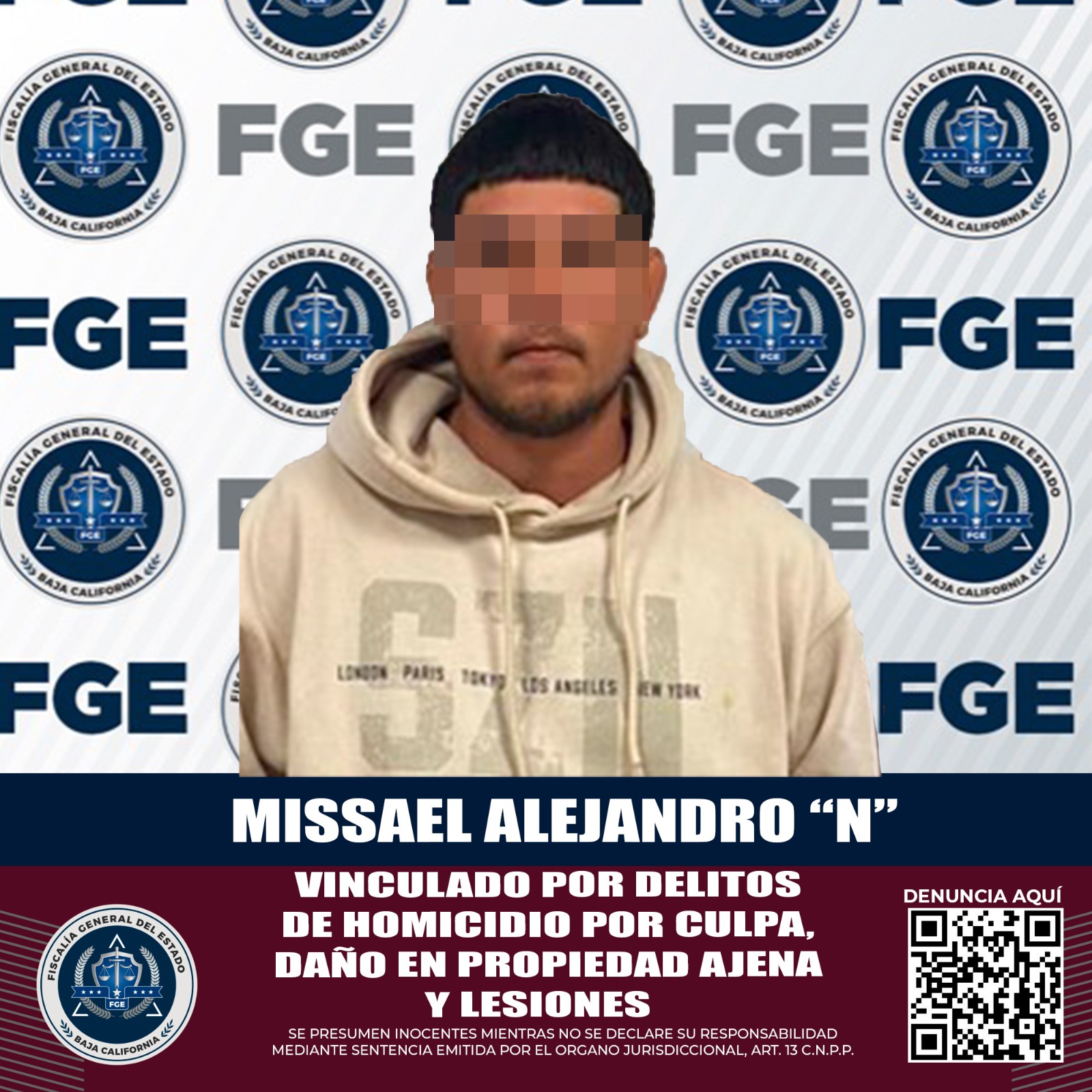 SAN FELIPE, B.C. La Fiscalía Regional de San Felipe, logró la vinculación a proceso de un hombre, relacionado en un accidente registrado la mañana del 8 de octubre de 2023 en donde perdió la vida de una persona y otra quedó otra lesionada.