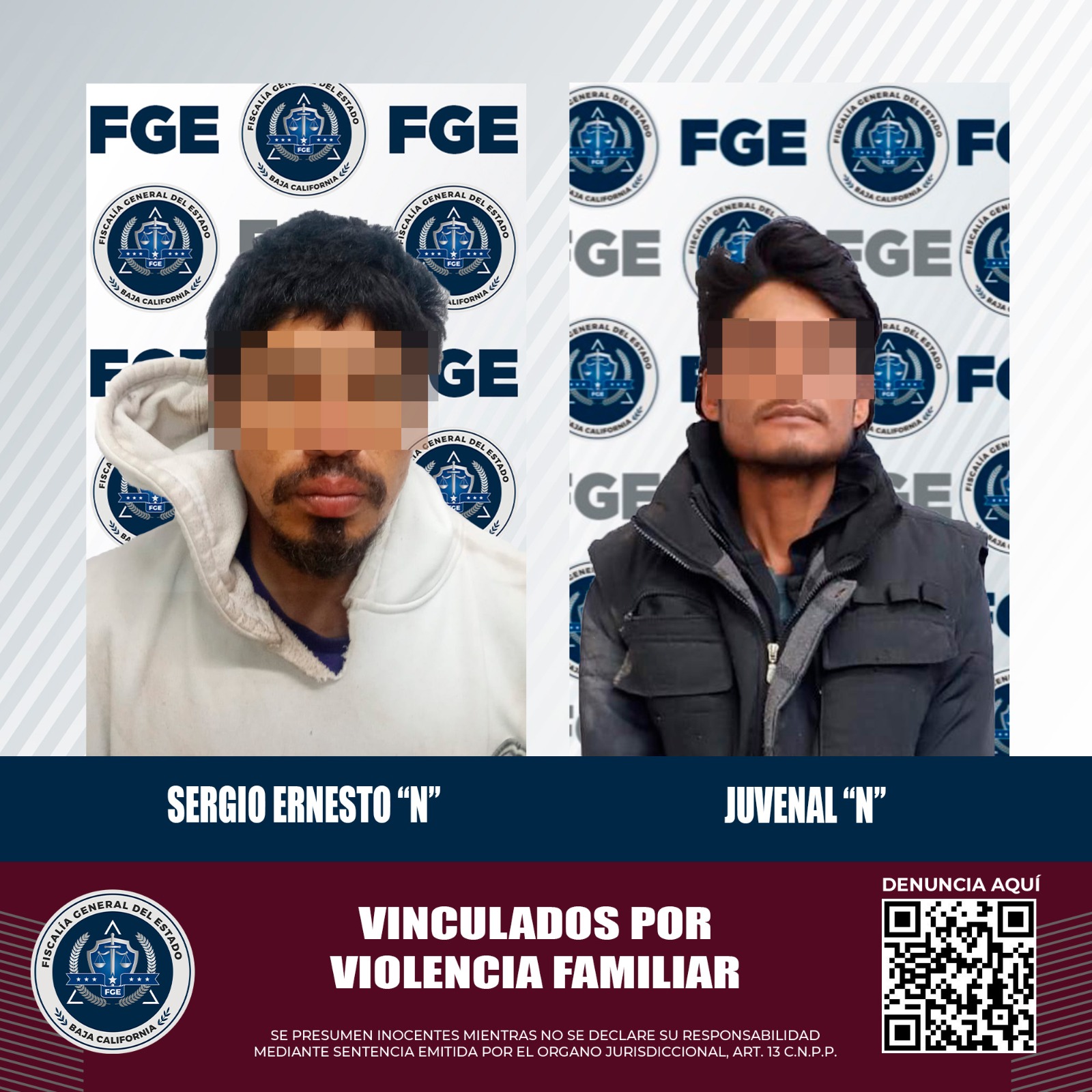 MEXICALI, B.C. Por su presunta participación en el delito de violencia familiar, dos hombres fueron vinculados a proceso y se encuentran en prisión preventiva, con base al trabajo realizado por la Fiscalía Regional de Mexicali, a través de la Unidad de Investigación Foránea de Guadalupe Victoria.