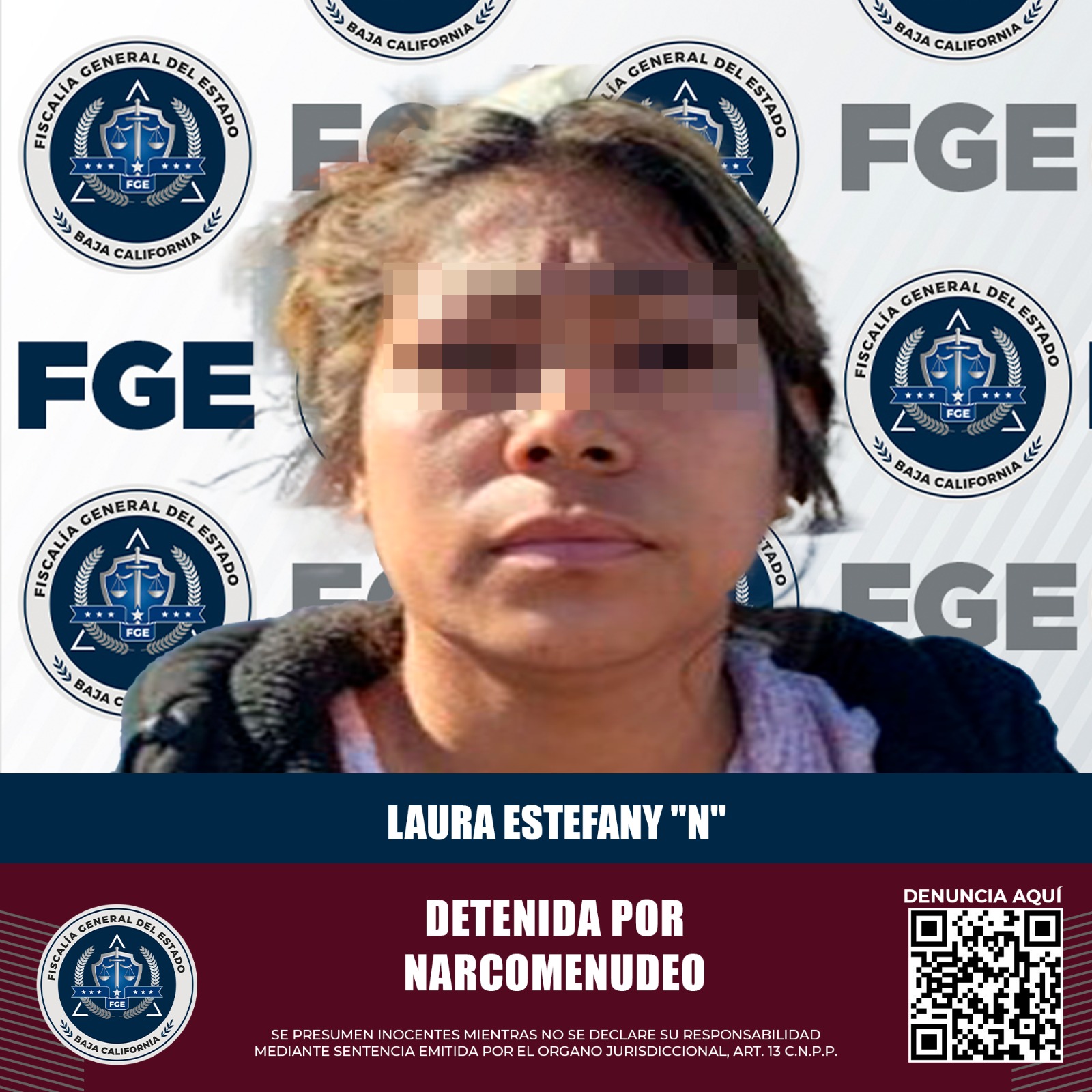 Durante la ejecución de la diligencia judicial, los agentes investigadores localizaron 26 bolsas de plástico, conteniendo una sustancia blanca y granulada con las características de la metanfetamina, con peso aproximado un gramo. En el lugar, se detuvo a Laura Estefany "N", de 36 años.