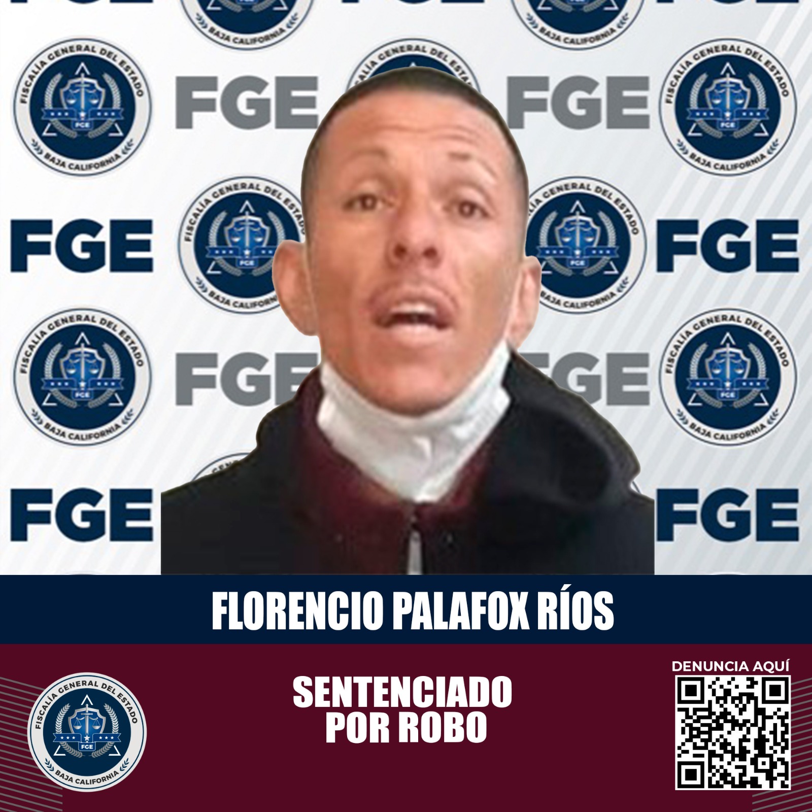 MEXICALI, B.C. La Fiscalía Regional de Mexicali, a través de la Unidad de Investigación con Detenidos Oriente, logró una sentencia condenatoria contra de Florencio Palafox Ríos por el delito de robo con violencia, con base en la presentación de pruebas y argumentos contundentes.