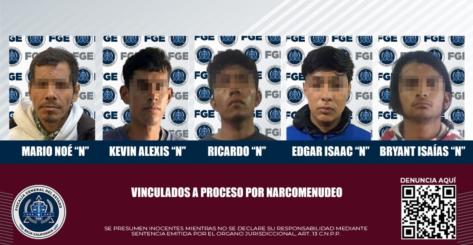 TIJUANA, B.C. En audiencias de vinculación a proceso llevadas a cabo de manera independiente, la Fiscalía General del Estado informa que cinco acusados por el delito contra la salud en la modalidad de narcomenudeo han quedado sujetos a proceso penal.