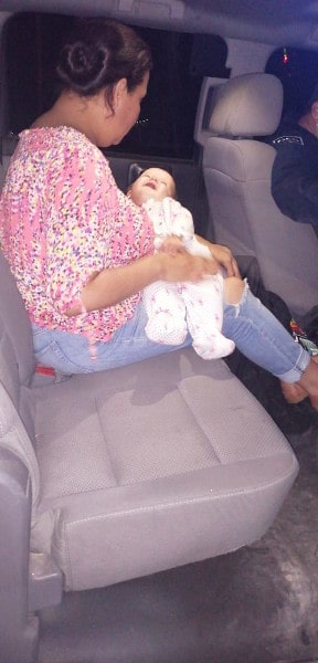 Durante un recorrido de prevención sobre la carretera libre a Tecate, agentes de la Guardia Estatal de Seguridad e Investigación (GESI), fueron abordados por Elizabeth quien cargaba en sus brazos a su bebe.