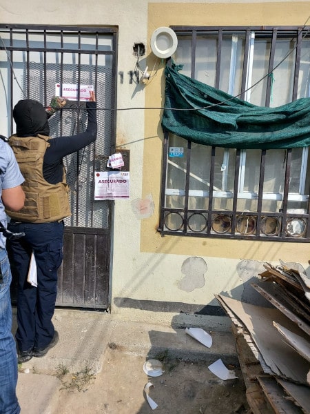 Tras integrar la respectiva carpeta de investigación con evidencias suficientes, el Agente del Ministerio Público solicitó al Juez de Control, la orden de cateo para el domicilio marcado con el número 111 ubicado en la privada Lantana de la colonia Villa del Álamo, que al parecer utilizado para la distribución de narcóticos.