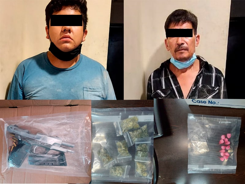 Los detenidos, el arma de fuego y la droga decomisada, fueron puestos a disposición de la autoridad competente.