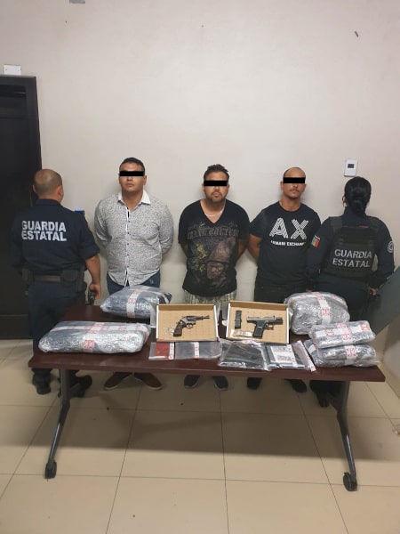 TIJUANA, BAJA CALIFORNIA A 27 DE AGOSTO 2020.- La Fiscalía General del Estado (FGE), informó la captura de tres individuos que transportaban armas de fuego, droga, cartuchos de diferentes calibres y equipo de uso de las corporaciones policiales.