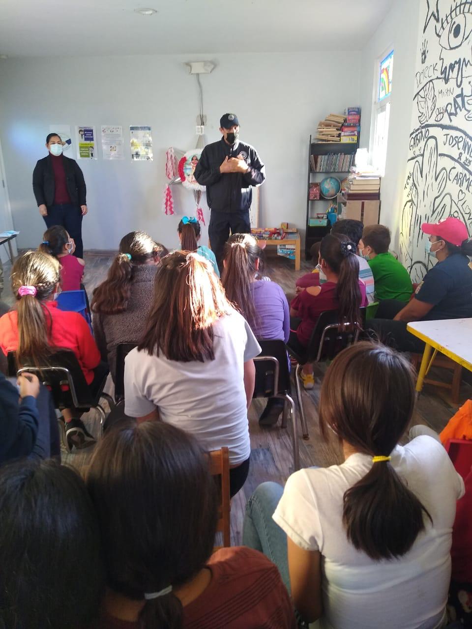 La Guardia Estatal de Seguridad e Investigación (GESI), a través del Área de Proximidad Comunitaria, informó que en esta ocasión atendió a aproximadamente 128 alumnos y maestros de tercero a sexto de primaria de Colegio Inglés, en Ensenada.