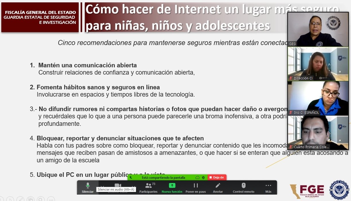 La Fiscalía General del Estado (FGE), a través del área de Proximidad Social de la Guardia Estatal de Seguridad e Investigación, impartió la plática preventiva denominada, “Seguridad en Internet”.