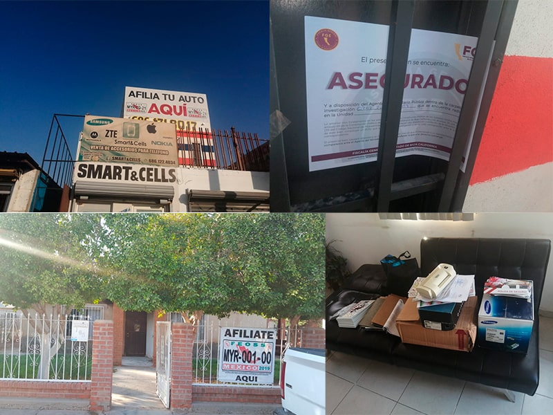 La Fiscalía General del Estado (FGE) realizó de simultanea 4 cateos en lugares que operaban como oficinas tramitadores de documentos irregulares para la circulación de vehículos, de la denominada ANAPPAFA, DEPAFASON y FEOSS, ubicadas en la ciudad y valle de Mexicali.