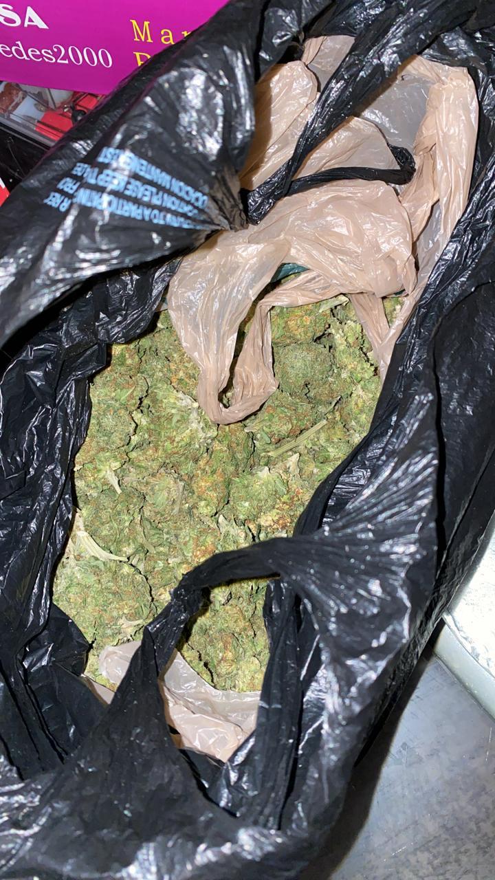 En seguimiento al protocolo de seguridad se realizó una inspección en el interior del vehículo, dentro del cual se observó una bolsa de plástico que contenía aproximadamente 667 gramos de marihuana.