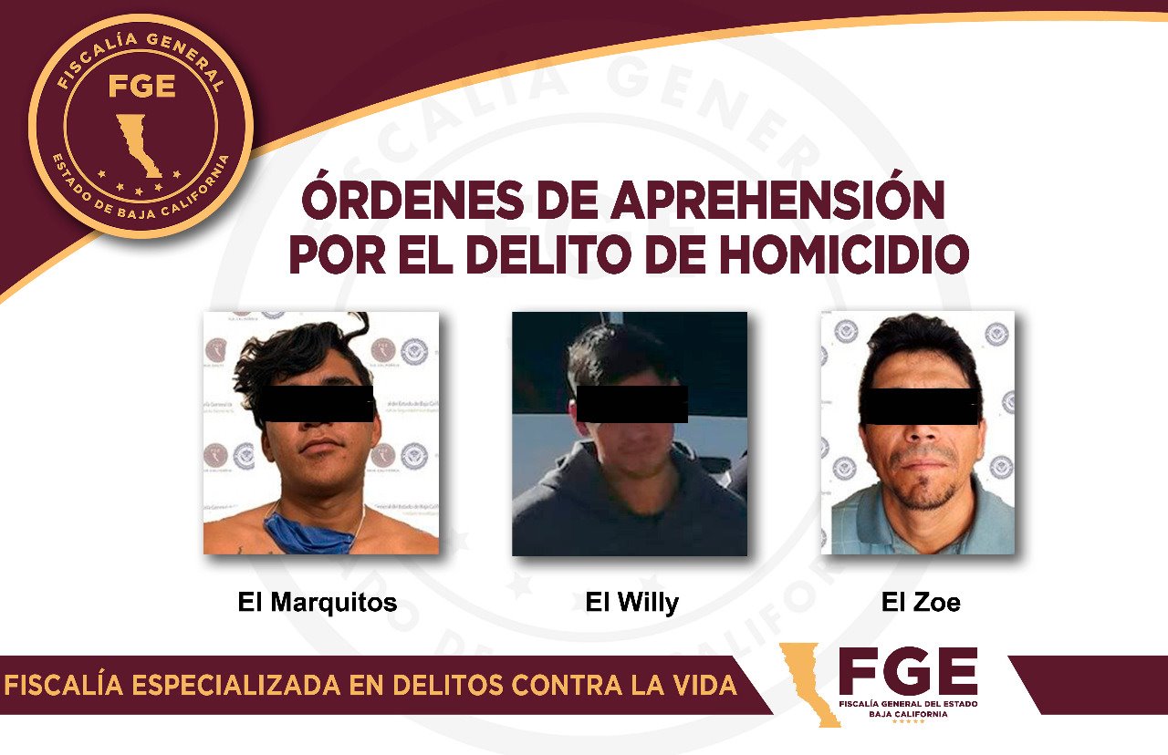 A los imputados *RIGOBERTO* “N” y/o *EDWIN DAVID* alias "Zoe” de 24 años; JORGE ALBERTO “N” alias “El Manguito”y/o “Marquitos” de 19 años y *ALEJANDRO JAVIER* “N” alias “El Willy” de 39, les cumplimentaron orden aprehensión por el delito de homicidio calificado por ventaja en agravio de Abraham Guadalupe Martínez Lucero, alias “El Gallo” de 37 años y Ramón Omar Peralta Miranda, alias “El Monchis” de 40.
