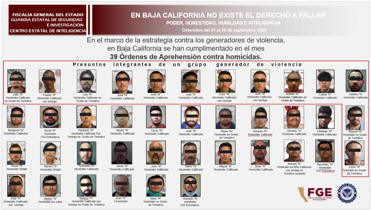 • Captura FGE durante septiembre a 39 homicidas en Baja California