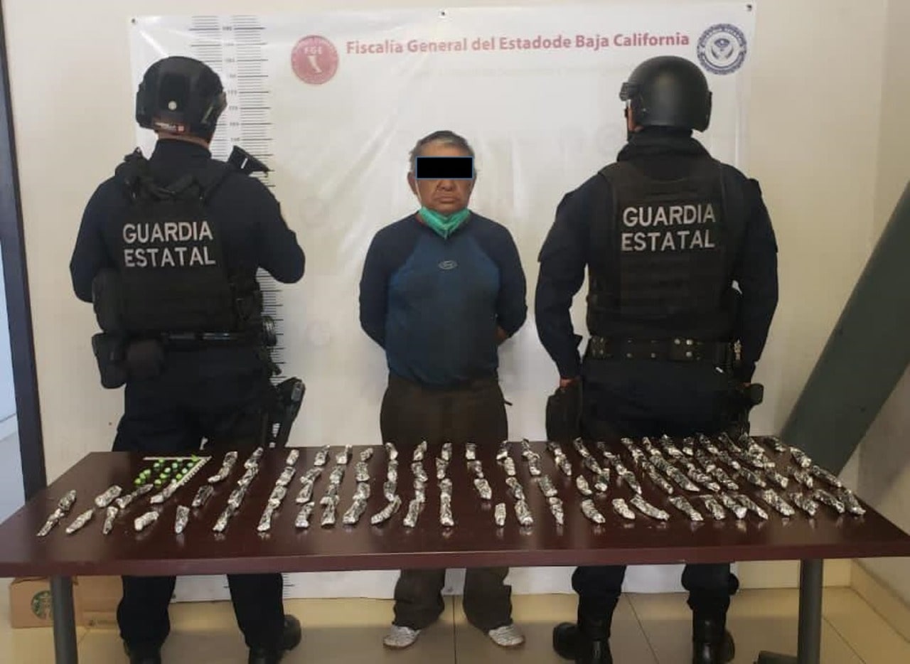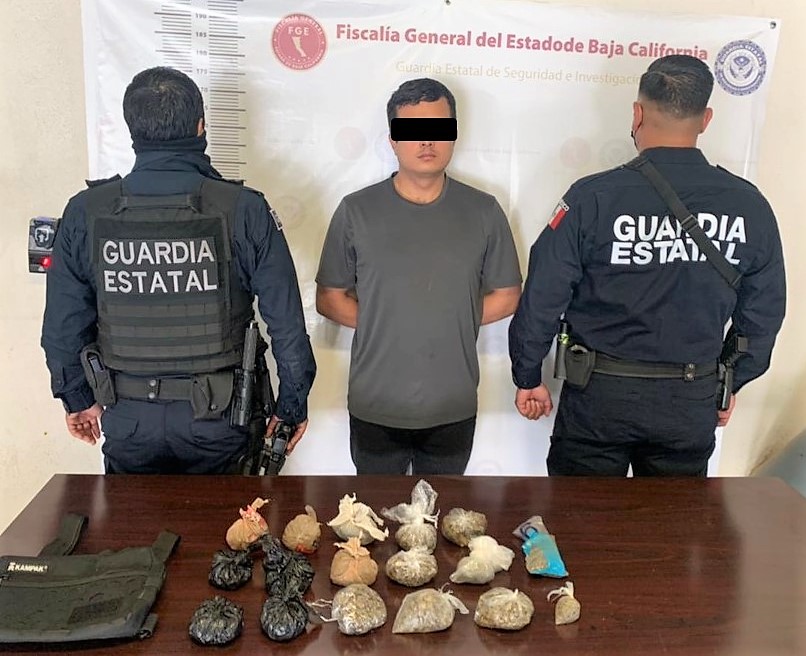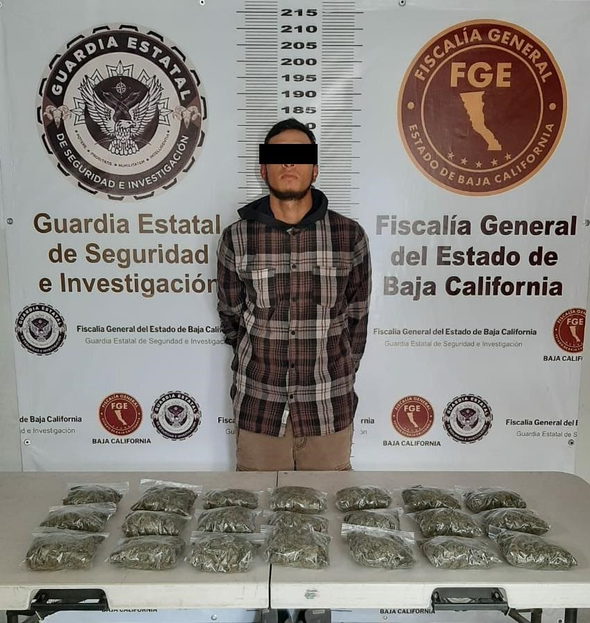 Un sujeto fue detenido con 100 dosis de droga conocida como marihuana en un recorrido de vigilancia por la Zona Norte, esto gracias a los patrullajes realizados por los elementos de la Fiscalía General del Estado de Baja California (FGE).