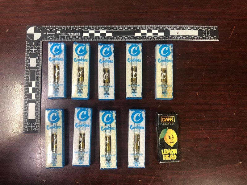 Ambos quedaron bajo arresto por presunta comisión de delitos contra la salud, tras ser encontrados en posesión de 10 cartuchos que contenían marihuana líquida conocida como Wax.