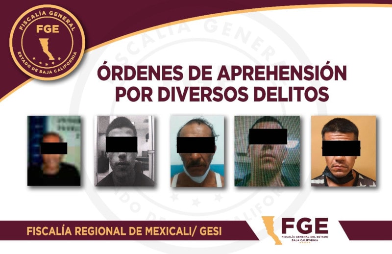 MEXICALI, BAJA CALIFORNIA A 17 DE AGOSTO DE 2020.- La Fiscalía General del Estado (FGE), aprehendió a seis hombres que eran requeridos por la ley, al estar relacionados con diversos delitos.