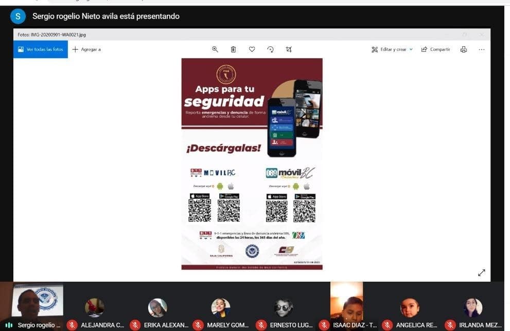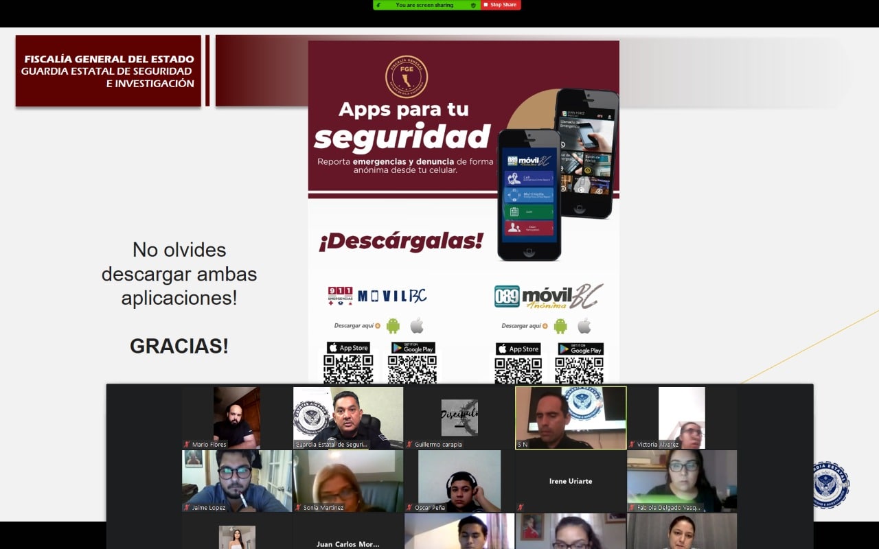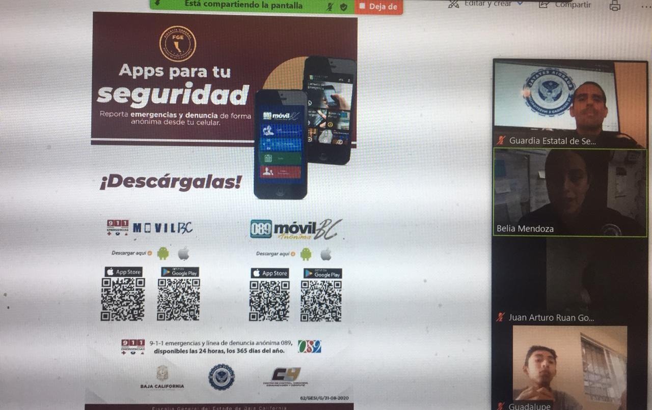 ENSENADA, B. C., A 9 DE SEPTIEMBRE DE 2020.- La Fiscalía General del Estado (FGE), imparte pláticas virtuales para difundir entre la ciudadanía el uso correcto del número de emergencias 9-1-1, y el de Denuncia Anónima 089.
