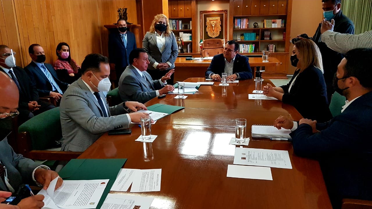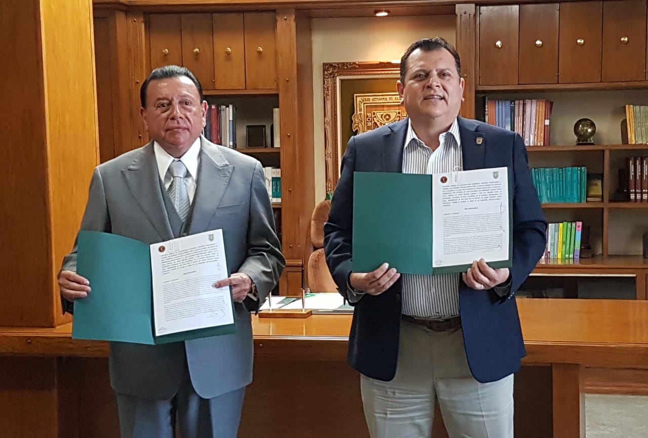 Durante el evento celebrado en la Rectoría de la UABC, el Fiscal General, Juan Guillermo Ruiz Hernández, y el Rector de la UABC, Daniel Octavio Valdez Delgadillo, coincidieron en seguir trabajando de la mano a favor de la comunidad universitaria y de la sociedad en general, en esta ocasión en particular a fin de que los alumnos realicen su Servicio Social Profesional y Prácticas Profesionales.