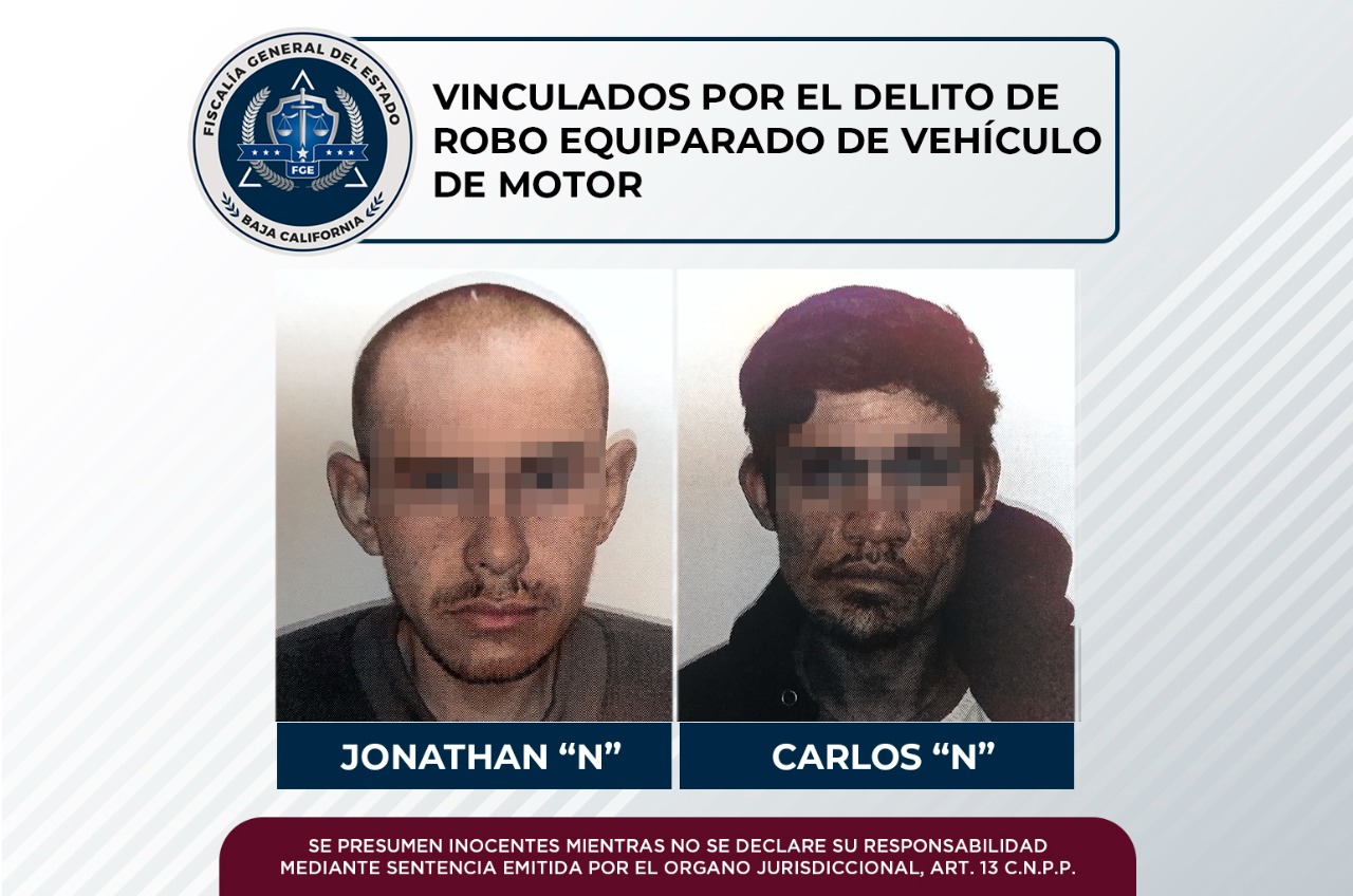 TIJUANA, B.C. Con base a labor de investigación y elementos de prueba recabados por la Fiscalía General del Estado, se obtuvo la vinculación a proceso de Jonathan “N” y Carlos “N”, por el delito de robo equiparado de vehículo de motor (usar vehículo de motor robado).