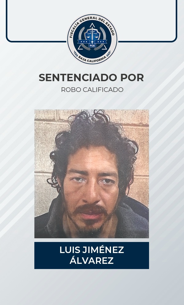 TIJUANA, B.C. Acciones de investigación desarrolladas por la Fiscalía Regional de Tijuana, derivaron en la obtención de una sentencia para Luis Jiménez Álvarez, penalmente responsable del robo cometido a una institución educativa en el año 2021.